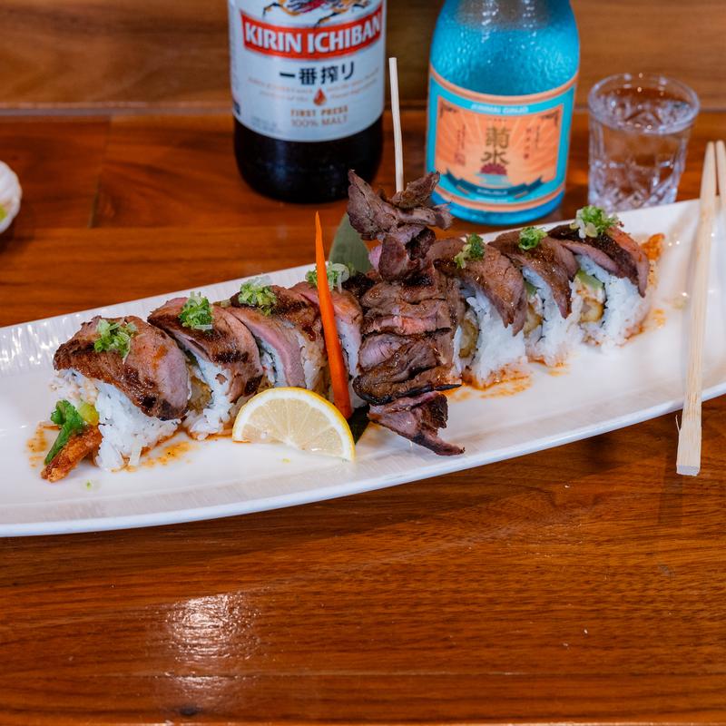 Choose one: Crunch Shrimp Roll, Playboy Roll, Spider Roll, Spanish Roll, Rainbow Roll, Submarine Roll • 4 pcs nigiri (Tuna, Salmon, Albacore, White Fish)